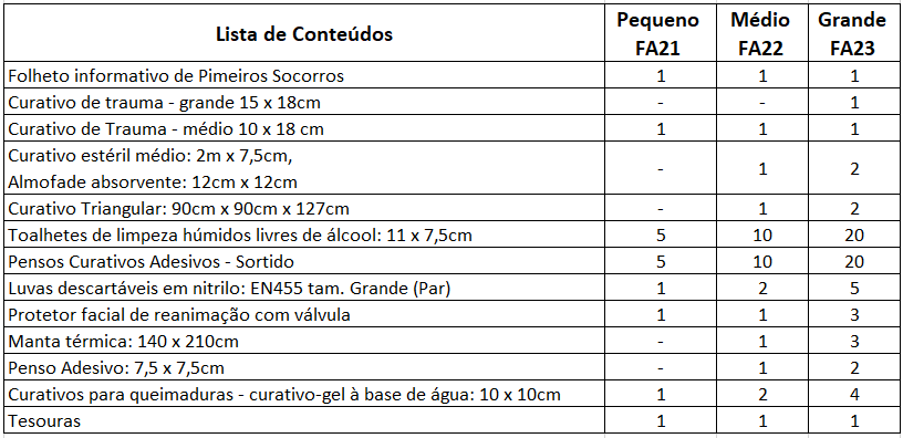 Kit de Primeiros Socorros para veículos - FA21, FA22 e FA23